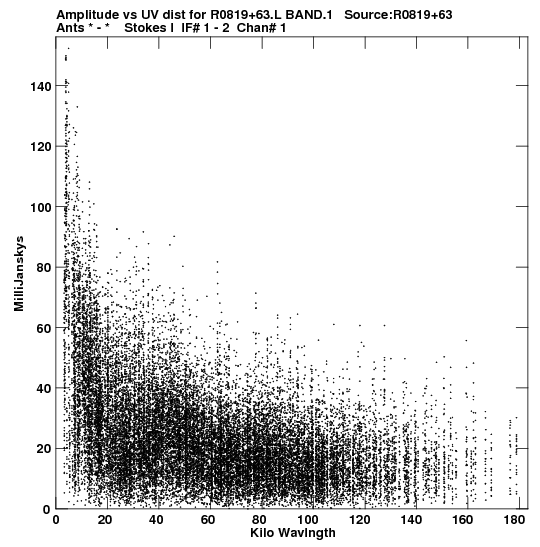 angle, the approximate noise level in prefixed units of Jansky, and a