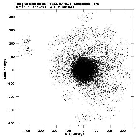 angle, the approximate noise level in prefixed units of Jansky, and a