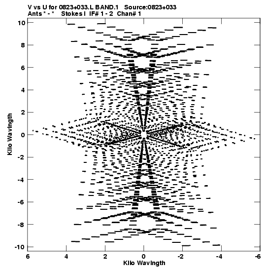 • Links is a collection of links that will show you the GIF uv-coverage and visibility plot for this data set in pop-up windows. See the README file on how to interpret these plots. They'll also get you to the project pipelining scripts and information log files as well as the full multi-source archive data on this project.