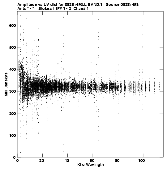 • Links is a collection of links that will show you the GIF uv-coverage and visibility plot for this data set in pop-up windows. See the README file on how to interpret these plots. They'll also get you to the project pipelining scripts and information log files as well as the full multi-source archive data on this project.