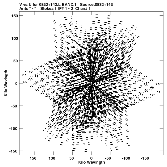 • Links is a collection of links that will show you the GIF uv-coverage and visibility plot for this data set in pop-up windows. See the README file on how to interpret these plots. They'll also get you to the project pipelining scripts and information log files as well as the full multi-source archive data on this project.