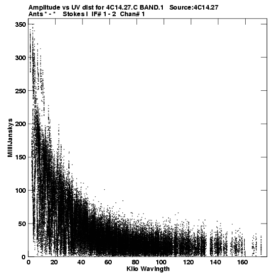 angle, the approximate noise level in prefixed units of Jansky, and a