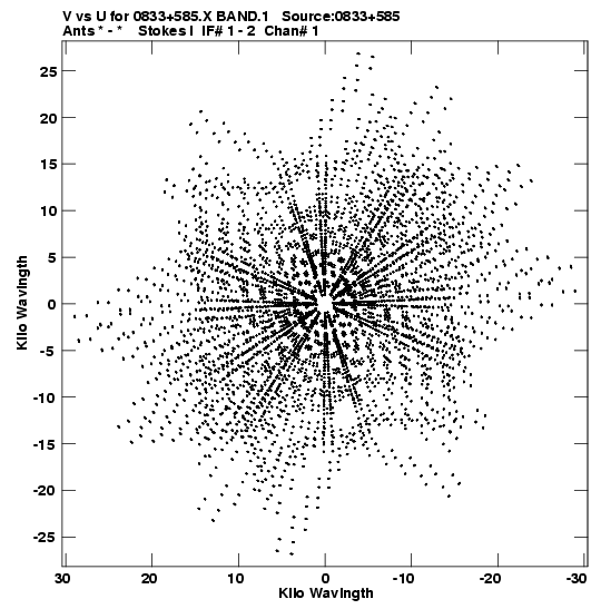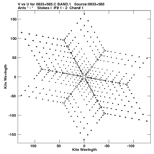 • Links is a collection of links that will show you the GIF uv-coverage and visibility plot for this data set in pop-up windows. See the README file on how to interpret these plots. They'll also get you to the project pipelining scripts and information log files as well as the full multi-source archive data on this project.