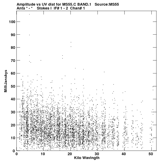 angle, the approximate noise level in prefixed units of Jansky, and a
