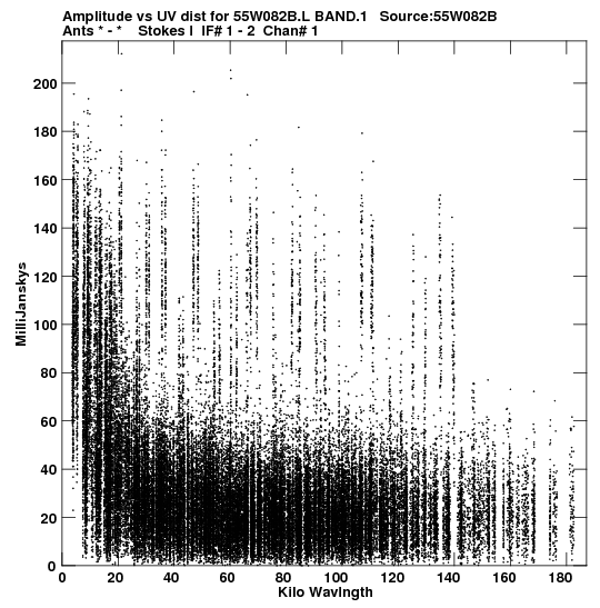 angle, the approximate noise level in prefixed units of Jansky, and a