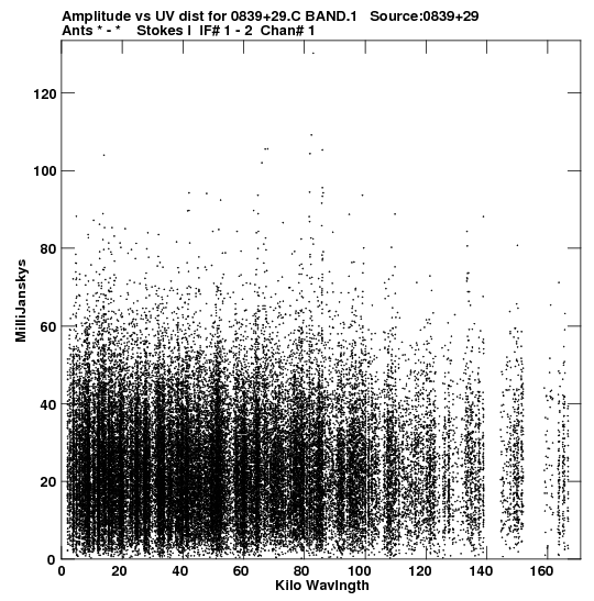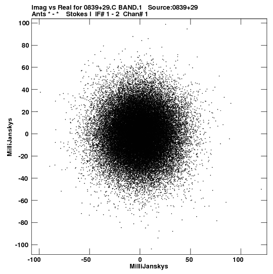 angle, the approximate noise level in prefixed units of Jansky, and a