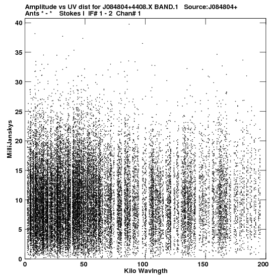 angle, the approximate noise level in prefixed units of Jansky, and a