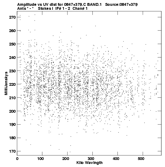 angle, the approximate noise level in prefixed units of Jansky, and a