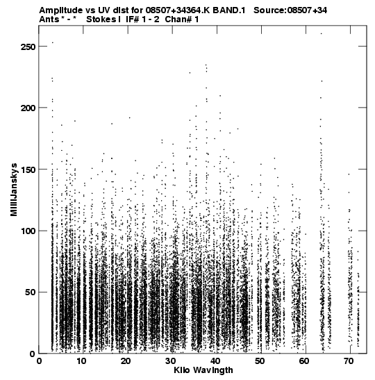 angle, the approximate noise level in prefixed units of Jansky, and a