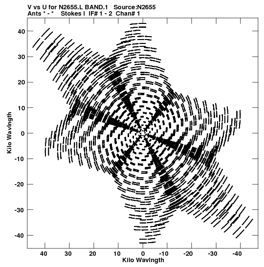 • Links is a collection of links that will show you the GIF uv-coverage and visibility plot for this data set in pop-up windows. See the README file on how to interpret these plots. They'll also get you to the project pipelining scripts and information log files as well as the full multi-source archive data on this project.