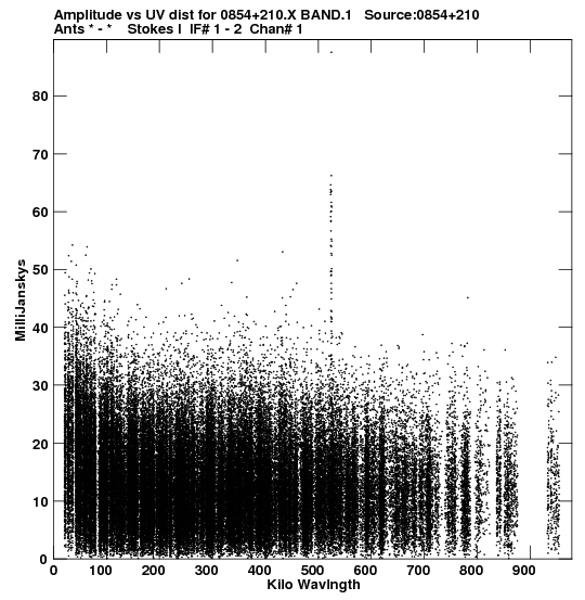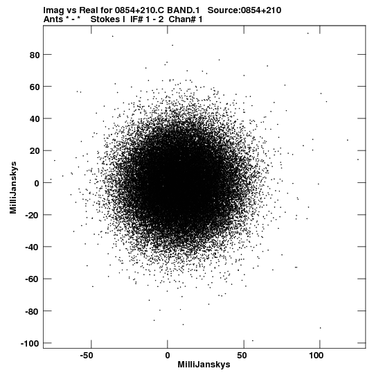 angle, the approximate noise level in prefixed units of Jansky, and a