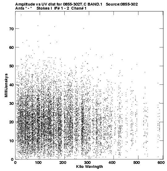 angle, the approximate noise level in prefixed units of Jansky, and a