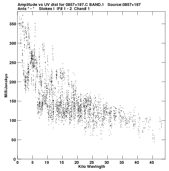 angle, the approximate noise level in prefixed units of Jansky, and a