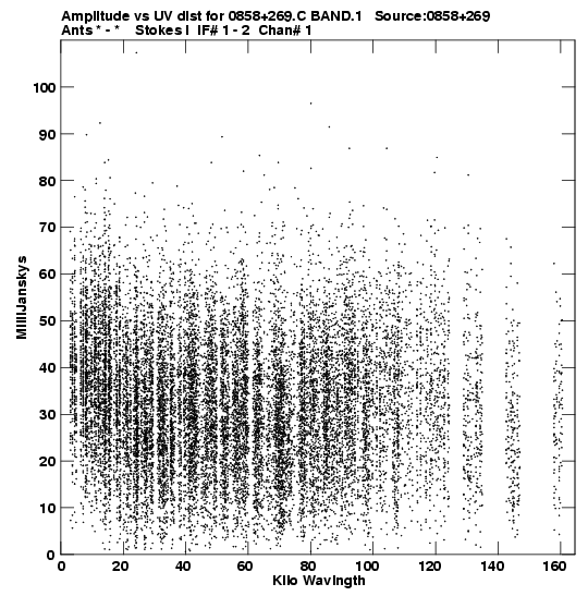 angle, the approximate noise level in prefixed units of Jansky, and a