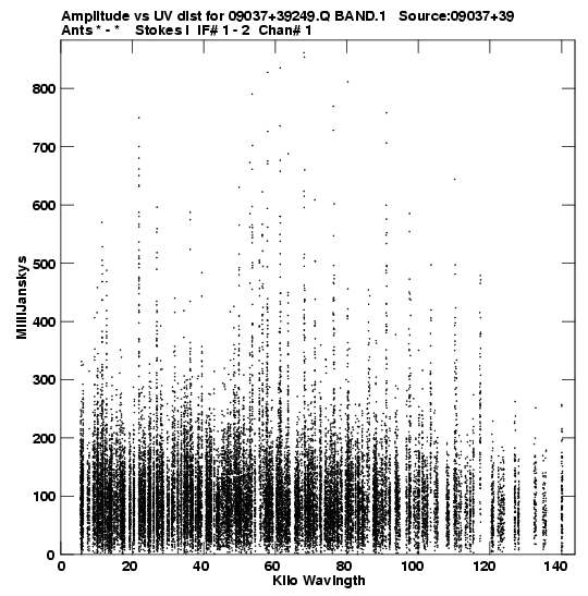angle, the approximate noise level in prefixed units of Jansky, and a