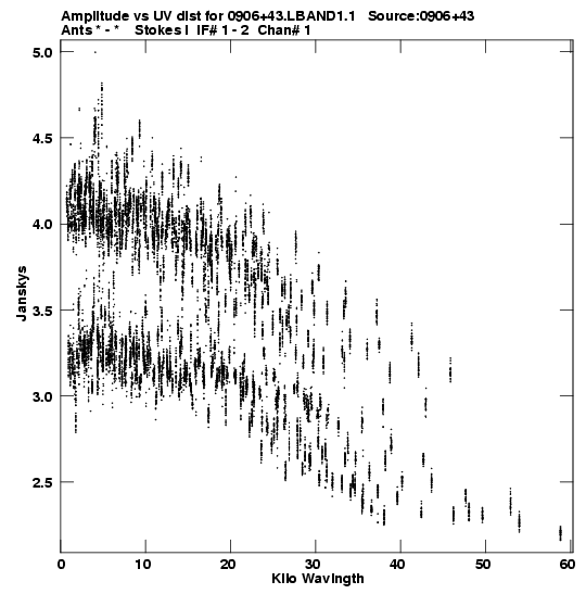 • Links is a collection of links that will show you the GIF uv-coverage and visibility plot for this data set in pop-up windows. See the README file on how to interpret these plots. They'll also get you to the project pipelining scripts and information log files as well as the full multi-source archive data on this project.