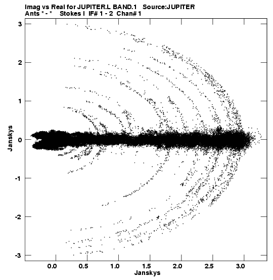 angle, the approximate noise level in prefixed units of Jansky, and a