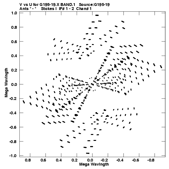 angle, the approximate noise level in prefixed units of Jansky, and a