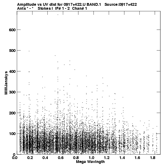 the calibrated single source uv FITS file and it's size (in red).