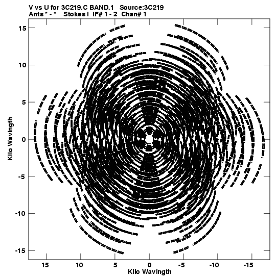• Links is a collection of links that will show you the GIF uv-coverage and visibility plot for this data set in pop-up windows. See the README file on how to interpret these plots. They'll also get you to the project pipelining scripts and information log files as well as the full multi-source archive data on this project.