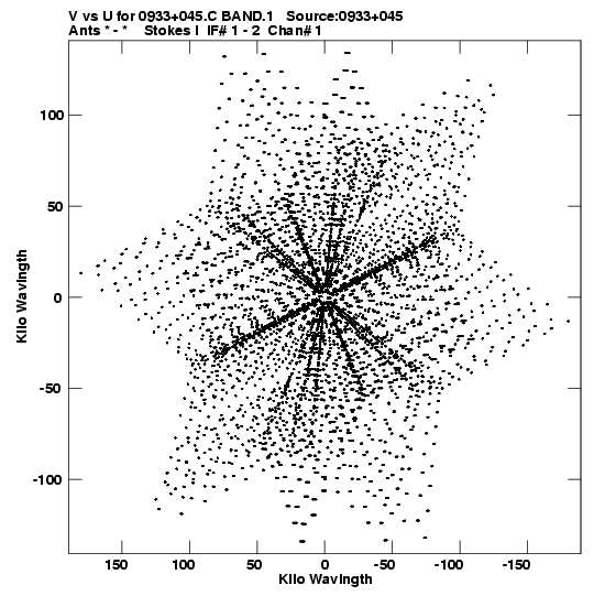 • Links is a collection of links that will show you the GIF uv-coverage and visibility plot for this data set in pop-up windows. See the README file on how to interpret these plots. They'll also get you to the project pipelining scripts and information log files as well as the full multi-source archive data on this project.