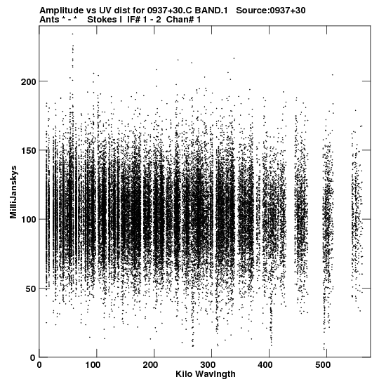 angle, the approximate noise level in prefixed units of Jansky, and a