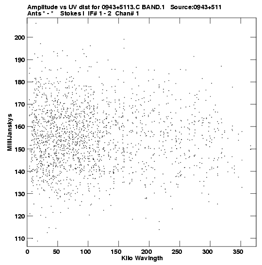 the calibrated single source uv FITS file and it's size (in red).