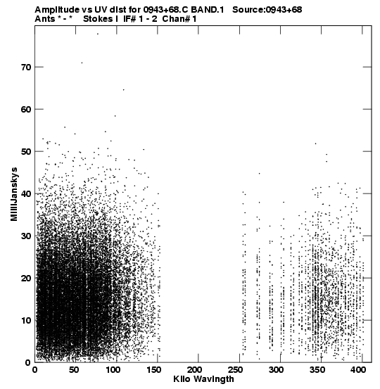 angle, the approximate noise level in prefixed units of Jansky, and a