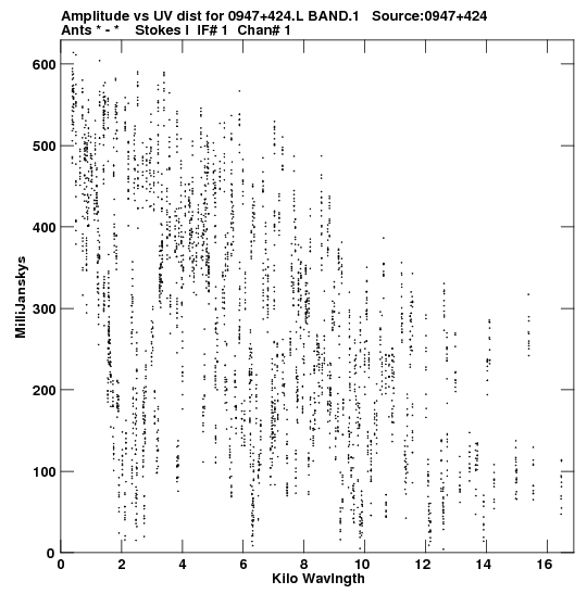 angle, the approximate noise level in prefixed units of Jansky, and a