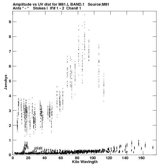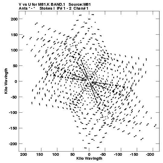 • Links is a collection of links that will show you the GIF uv-coverage and visibility plot for this data set in pop-up windows. See the README file on how to interpret these plots. They'll also get you to the project pipelining scripts and information log files as well as the full multi-source archive data on this project.