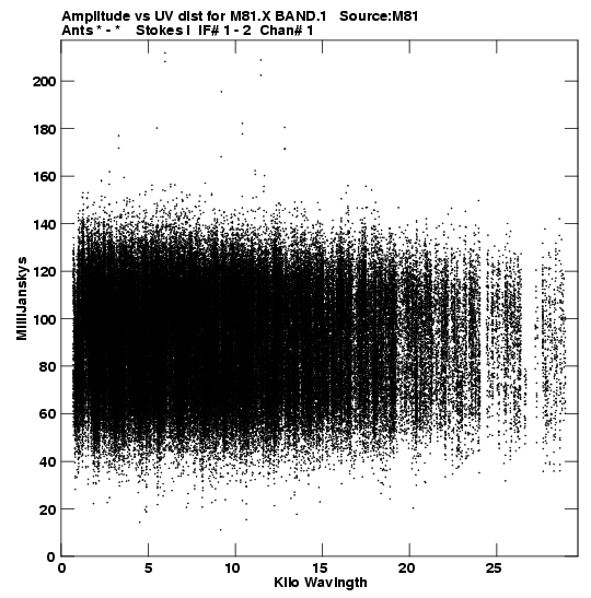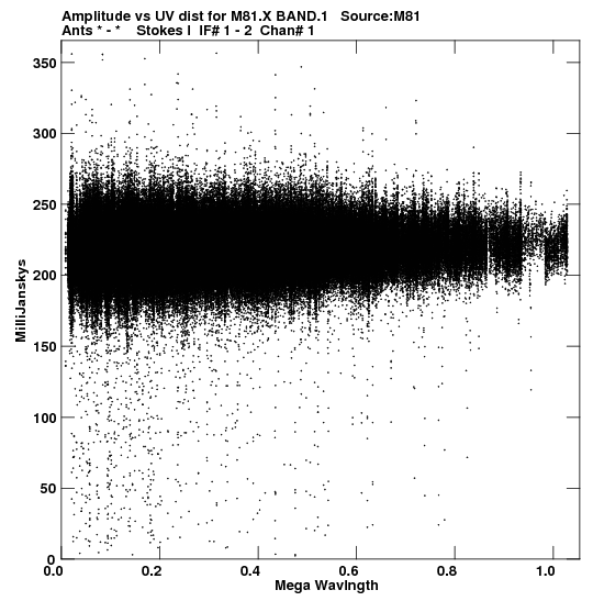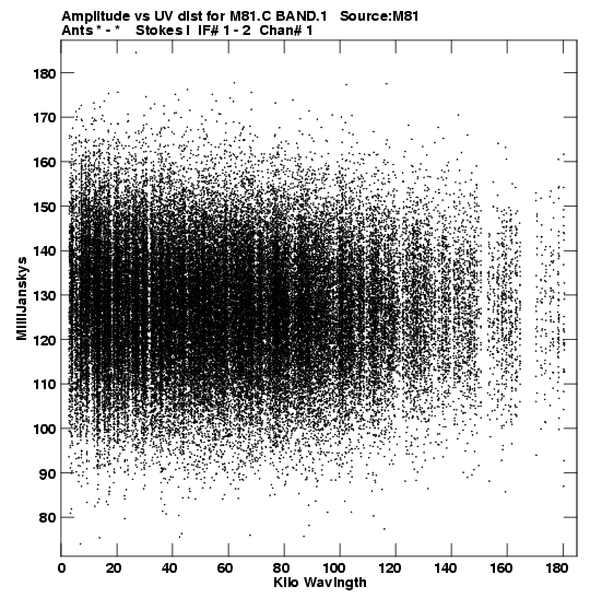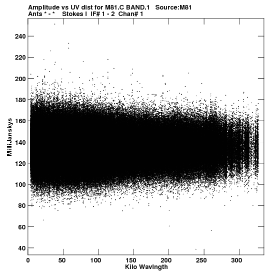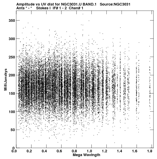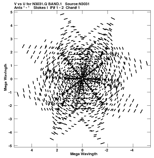 • UV Info lists the observed polarizations, shortest and longest VLA-arms (D=1km, C=3km, B=11km, A=36km, P=Pie Town link=75km), number of antennas used in the observation (though some may have been flagged as bad), the subarray setting of the array (1-5), a link to the calibrated single source uv FITS file and it's size (in red).
