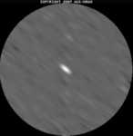 • JPEG shows a thumbnail of the pipeline image. Clicking it will show you a larger version in the browser. Both JPEG images have a square transfer function to emphasize the lower levels a bit more; do not use the JPEGs for scientific purposes (see next). As a guideline, the lighter a thumbnail, the less difference between the peak flux density and the rms noise level, i.e., don't expect to see too much in in light gray images, especially if the rms noise given in the next column is in the order of microJy or less. On the other hand, dark images have a strong source in there somewhere.. (try looking in the center of the image).