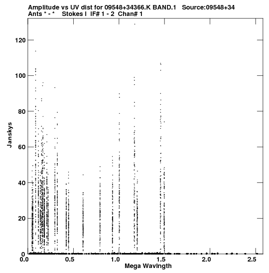 angle, the approximate noise level in prefixed units of Jansky, and a