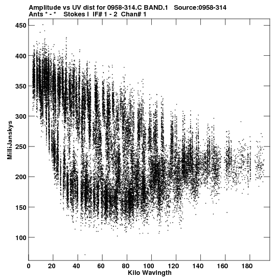 angle, the approximate noise level in prefixed units of Jansky, and a