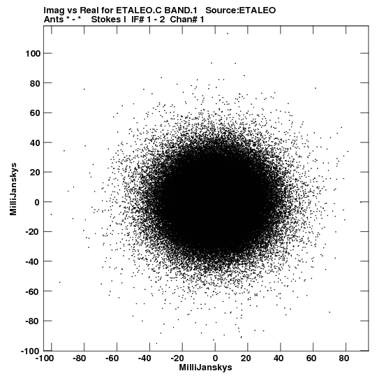 angle, the approximate noise level in prefixed units of Jansky, and a