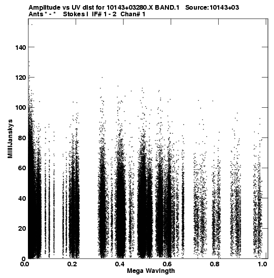 angle, the approximate noise level in prefixed units of Jansky, and a