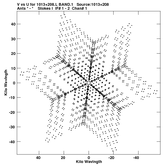 • Links is a collection of links that will show you the GIF uv-coverage and visibility plot for this data set in pop-up windows. See the README file on how to interpret these plots. They'll also get you to the project pipelining scripts and information log files as well as the full multi-source archive data on this project.