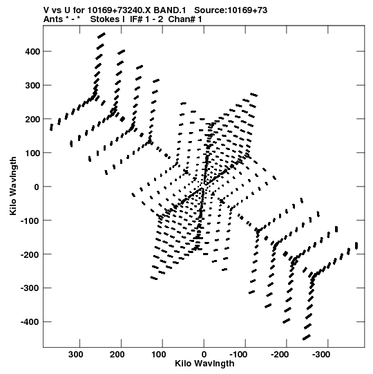 • Links is a collection of links that will show you the GIF uv-coverage and visibility plot for this data set in pop-up windows. See the README file on how to interpret these plots. They'll also get you to the project pipelining scripts and information log files as well as the full multi-source archive data on this project.