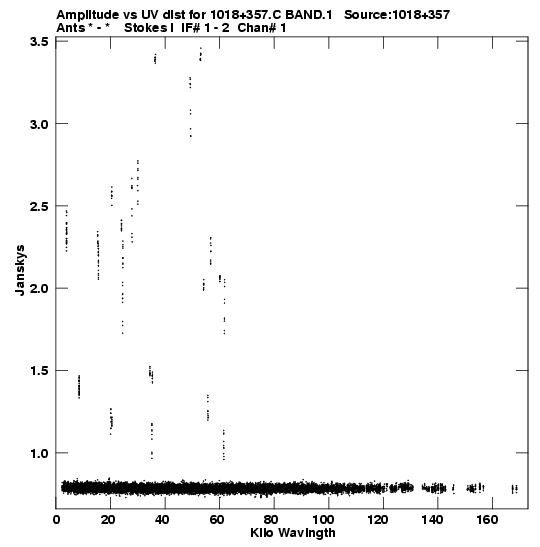 • Links is a collection of links that will show you the GIF uv-coverage and visibility plot for this data set in pop-up windows. See the README file on how to interpret these plots. They'll also get you to the project pipelining scripts and information log files as well as the full multi-source archive data on this project.