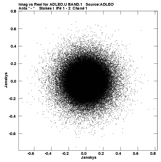 angle, the approximate noise level in prefixed units of Jansky, and a