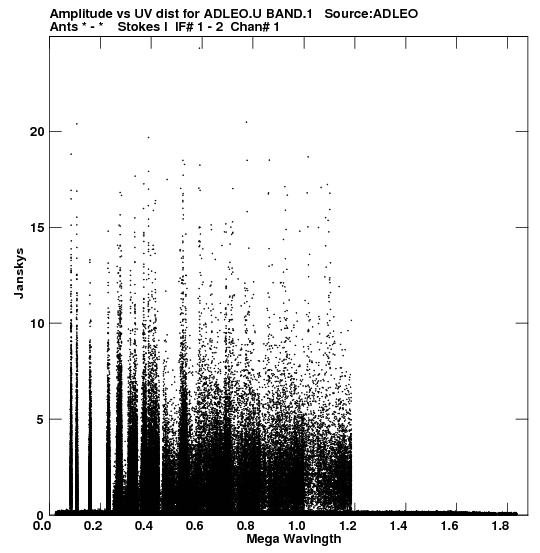 angle, the approximate noise level in prefixed units of Jansky, and a