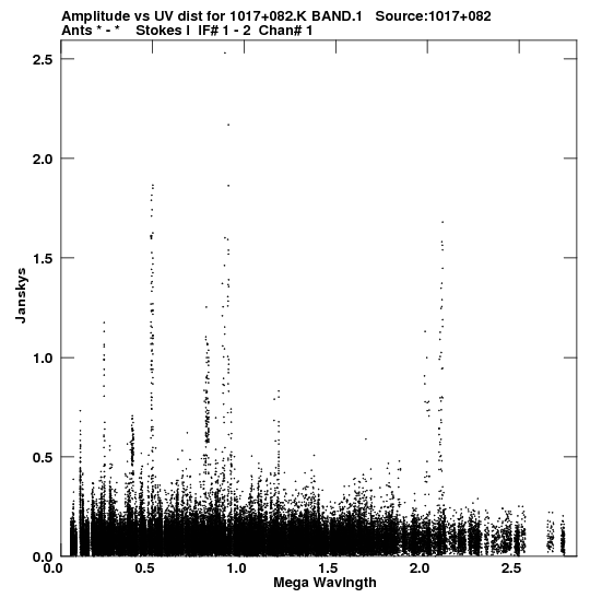 angle, the approximate noise level in prefixed units of Jansky, and a