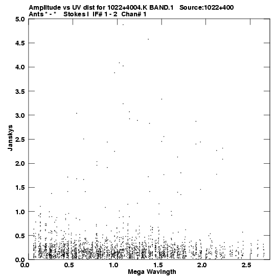 • Links is a collection of links that will show you the GIF uv-coverage and visibility plot for this data set in pop-up windows. See the README file on how to interpret these plots. They'll also get you to the project pipelining scripts and information log files as well as the full multi-source archive data on this project.