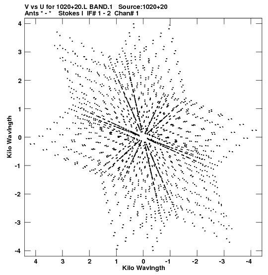 • Links is a collection of links that will show you the GIF uv-coverage and visibility plot for this data set in pop-up windows. See the README file on how to interpret these plots. They'll also get you to the project pipelining scripts and information log files as well as the full multi-source archive data on this project.