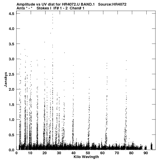 angle, the approximate noise level in prefixed units of Jansky, and a