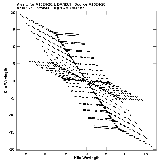 • Links is a collection of links that will show you the GIF uv-coverage and visibility plot for this data set in pop-up windows. See the README file on how to interpret these plots. They'll also get you to the project pipelining scripts and information log files as well as the full multi-source archive data on this project.