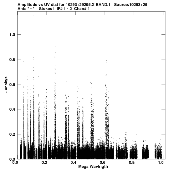 angle, the approximate noise level in prefixed units of Jansky, and a