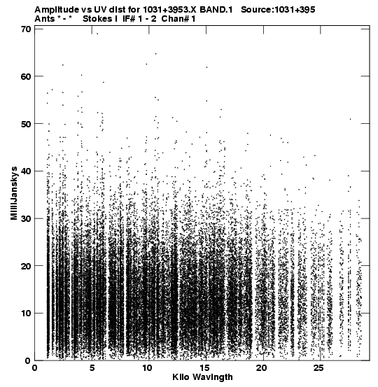 • Links is a collection of links that will show you the GIF uv-coverage and visibility plot for this data set in pop-up windows. See the README file on how to interpret these plots. They'll also get you to the project pipelining scripts and information log files as well as the full multi-source archive data on this project.