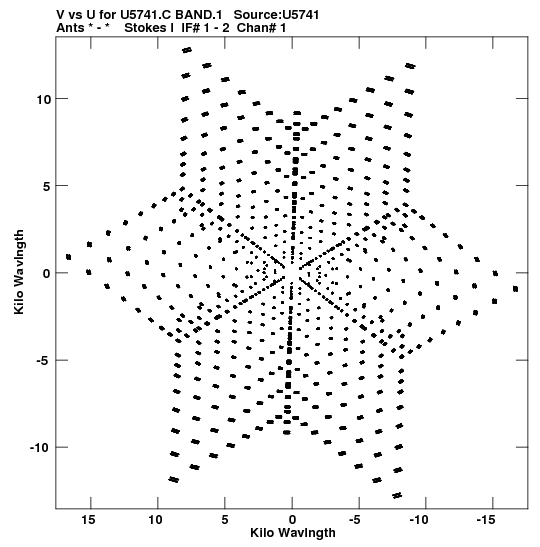 • Links is a collection of links that will show you the GIF uv-coverage and visibility plot for this data set in pop-up windows. See the README file on how to interpret these plots. They'll also get you to the project pipelining scripts and information log files as well as the full multi-source archive data on this project.