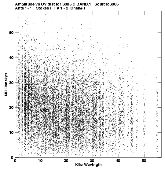 angle, the approximate noise level in prefixed units of Jansky, and a